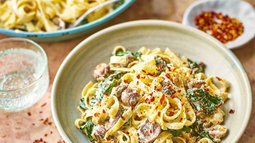 Pasta Cremosa con Champiñones y Espinacas
