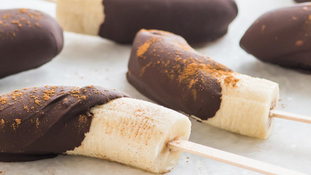 5. Baña el plátano con el chocolate fundido de forma uniforme.