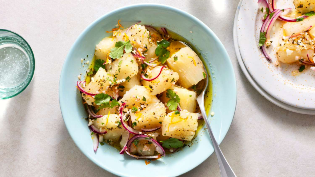 La yuca con mojo es un ejemplo claro de cocina caribeña bien entendida: pocos ingredientes, técnica mínima y un resultado que cumple siempre. No necesita reinventarse, solo hacerse bien.